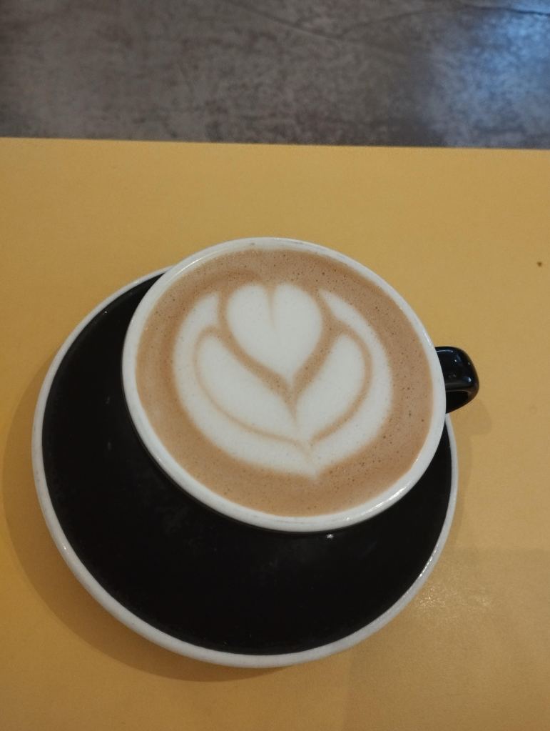 Next, I ordered a cappuccino with oat milk, which was very good, made with Ethiopian honey.